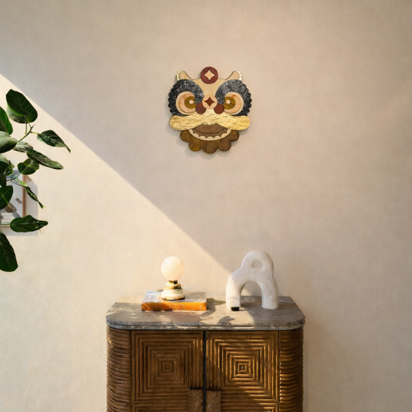 This lion dance home decor can last throughout all the CNY celebrations in the rest of your life. Say goodbye to paper decorations and hello to a timeless piece that you can put it up year after year. P.s. The rendering is not exactly to scale for the lion dance. The actual dimensions is around an A4 size paper (220mm length x 200mm width)